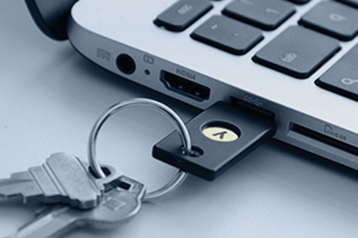 The YubiKey is a 2FA method based on a unique physical token which cannot be duplicated or recorded, providing a credential based on something only an authorized user possesses. Any computer with a USB port can use the YubiKey, regardless of the computer hardware, operating system or system drivers as it registers as a USB keyboard.